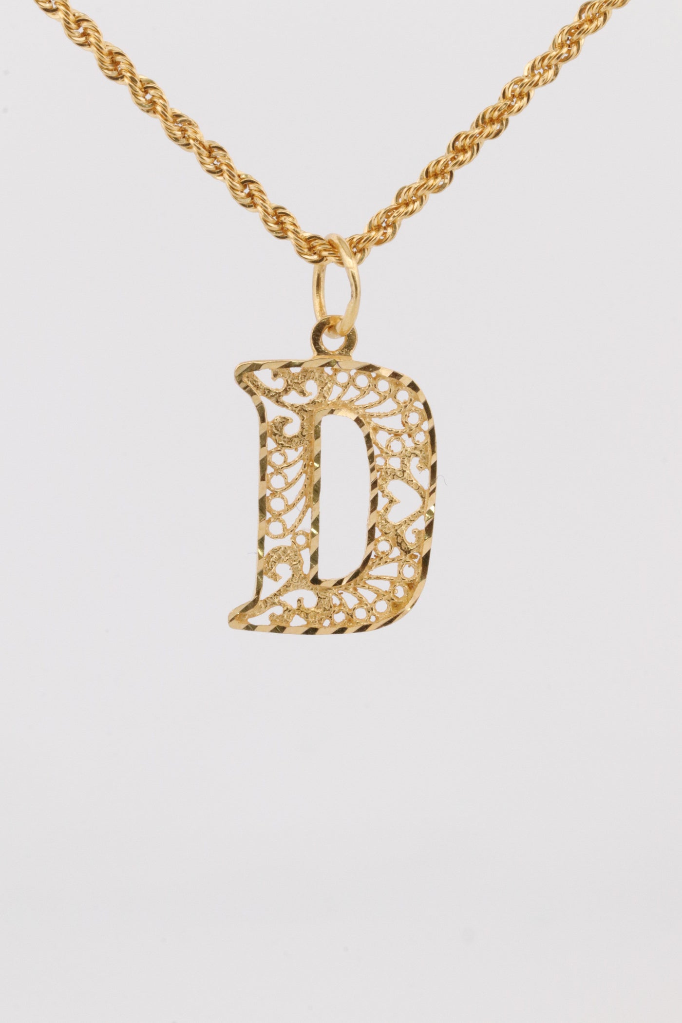 Express your individuality with timeless elegance through this Gold Letter D Pendant Necklace by Bigeasy Jewellers. Featuring a beautifully detailed filigree design, this pendant is crafted to add sophistication and charm to your jewelry collection. Perfect for daily wear or as a heartfelt gift, it blends tradition with modern style.
