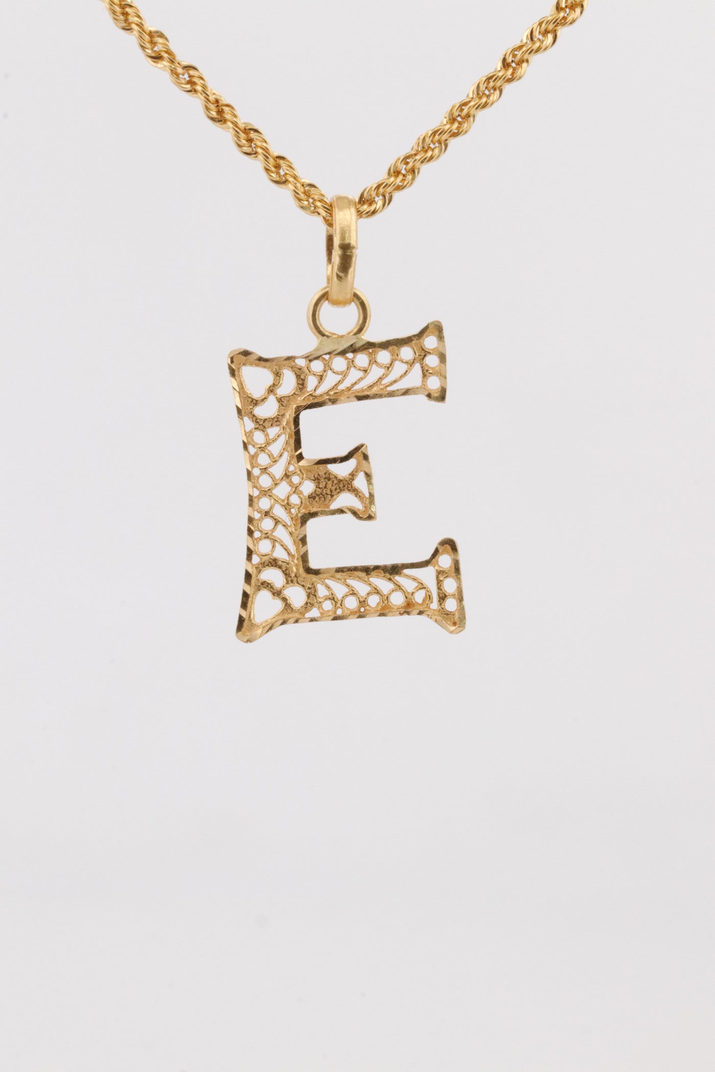 Gold Letter E Pendant Necklace – 1.34g Filigree Design | Bigeasy Jewellers