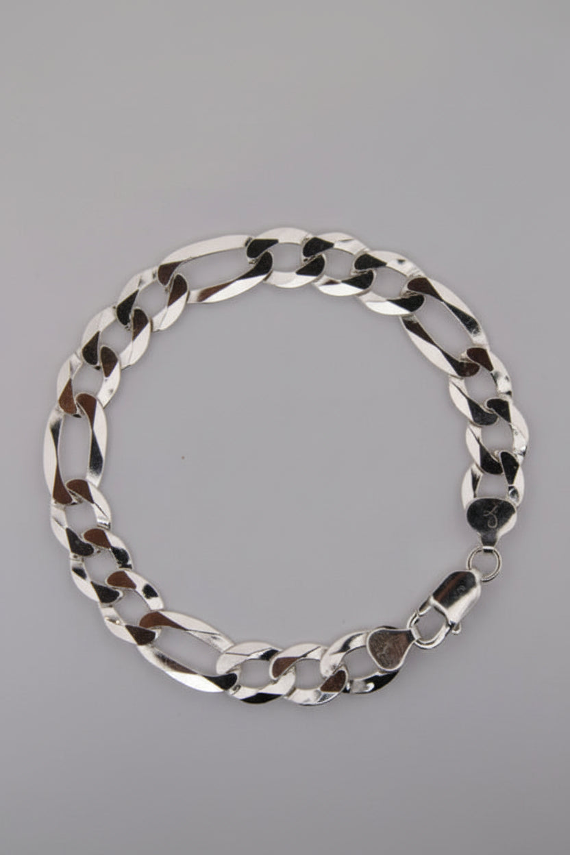 Crafted for everyday luxury, this 925 sterling silver Figaro bracelet delivers a bold yet timeless look. Each solid link is precision-finished with a high-polish shine that reflects quality and craftsmanship.