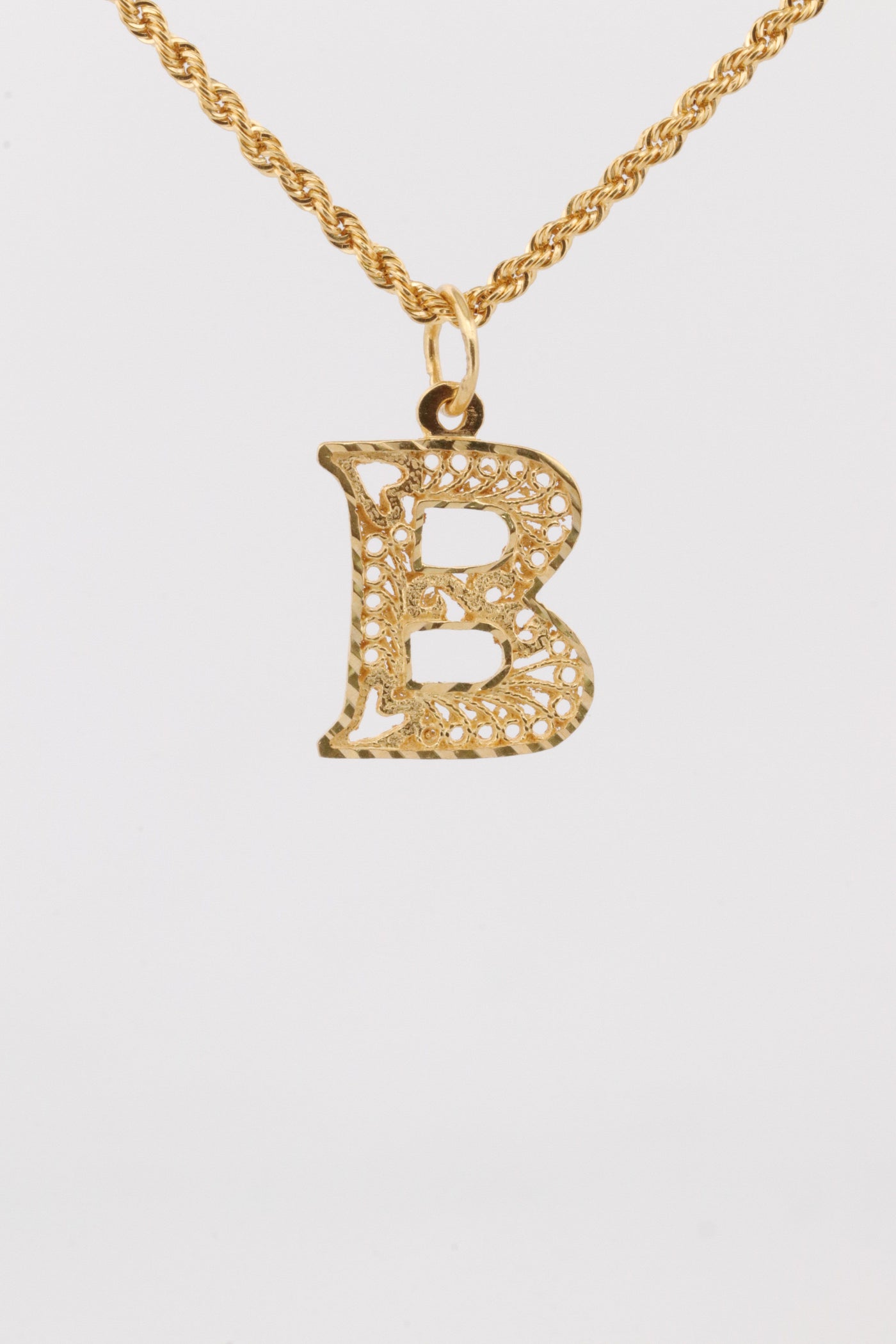 Gold Letter B Pendant Necklace – 1.40g Filigree Design | Bigeasy Jewellers